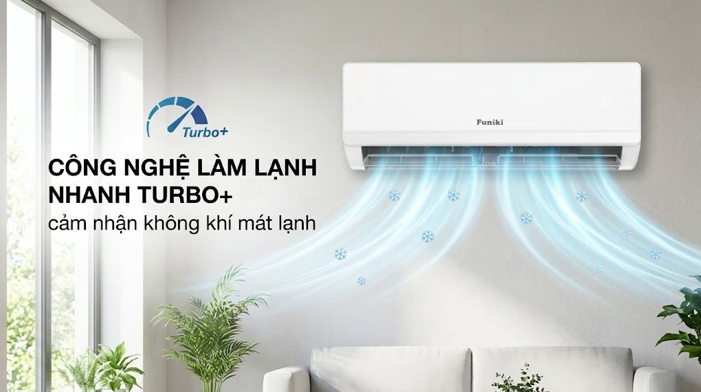 Máy được trang bị chế độ Turbo+ hỗ trợ tăng cường khả năng làm lạnh trong thời gian ngắn. Khi kích hoạt chế độ này, máy có thể đẩy nhanh quá trình làm mát để giúp không gian sớm đạt được mức nhiệt độ dễ chịu khi bạn vừa bật máy.