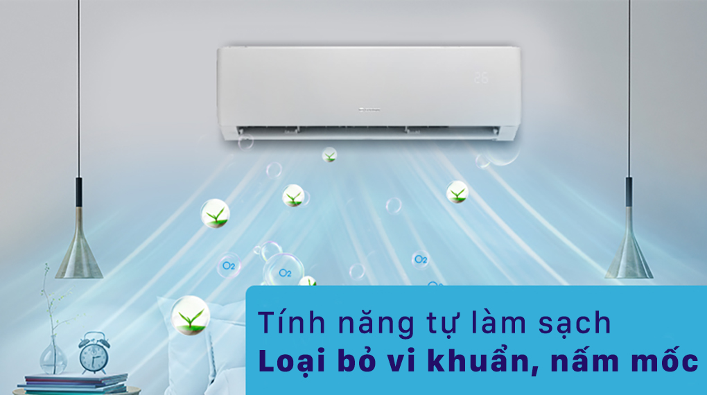 Sau một thời gian sử dụng mà không vệ sinh thì máy lạnh sẽ tích tụ vi khuẩn, nấm mốc. Giờ đây chiếc máy lạnh Gree này đã có tính năng tự làm sạch giúp loại bỏ nấm mốc vi khuẩn tích tụ sau mỗi lần sử dụng. Đem đến bầu không khí trong lành, không còn mùi ẩm mốc cho căn phòng của bạn.