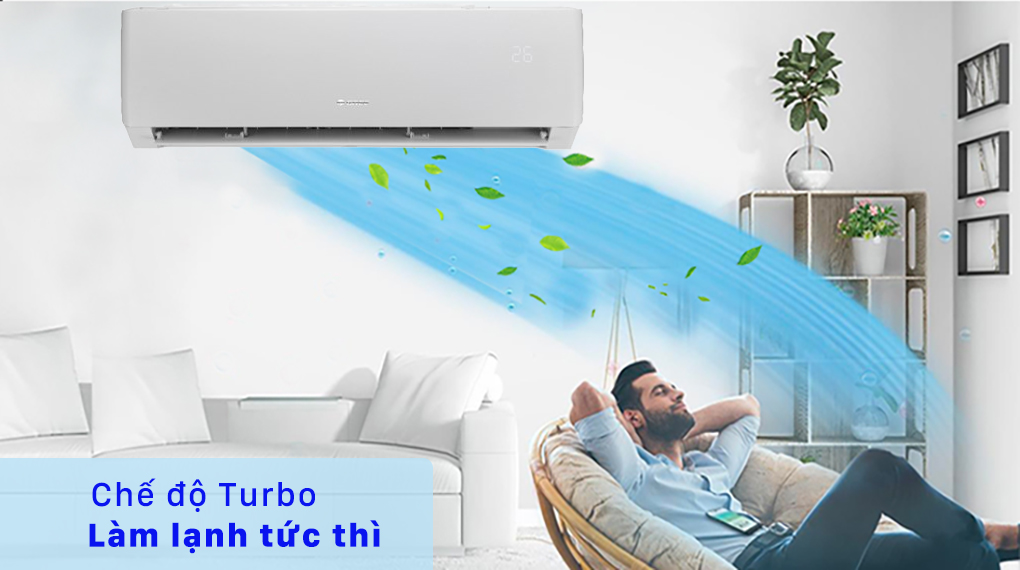Sau khi khởi động chế độ làm lạnh nhanh Turbo, gần như ngay lập tức bạn sẽ cảm nhận được luồng khí mát mẻ tỏa ra khắp căn phòng, đem đến cho bạn không gian mát lạnh tức thì.