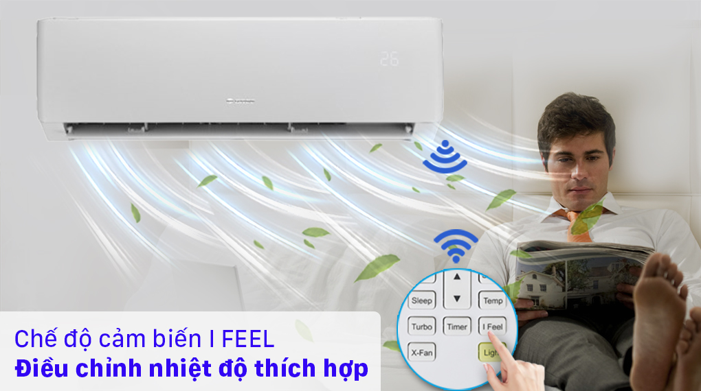 Khi tính năng I Feel được kích hoạt, remote sẽ cảm biến chính xác nhiệt độ môi trường xung quanh nơi nó được đặt, từ đó sẽ truyền tín hiệu đến dàn lạnh. Sau đó dàn lạnh sẽ cung cấp nhiệt độ chính xác tại khu vực đặt remote đúng với nhiệt độ cài đặt.