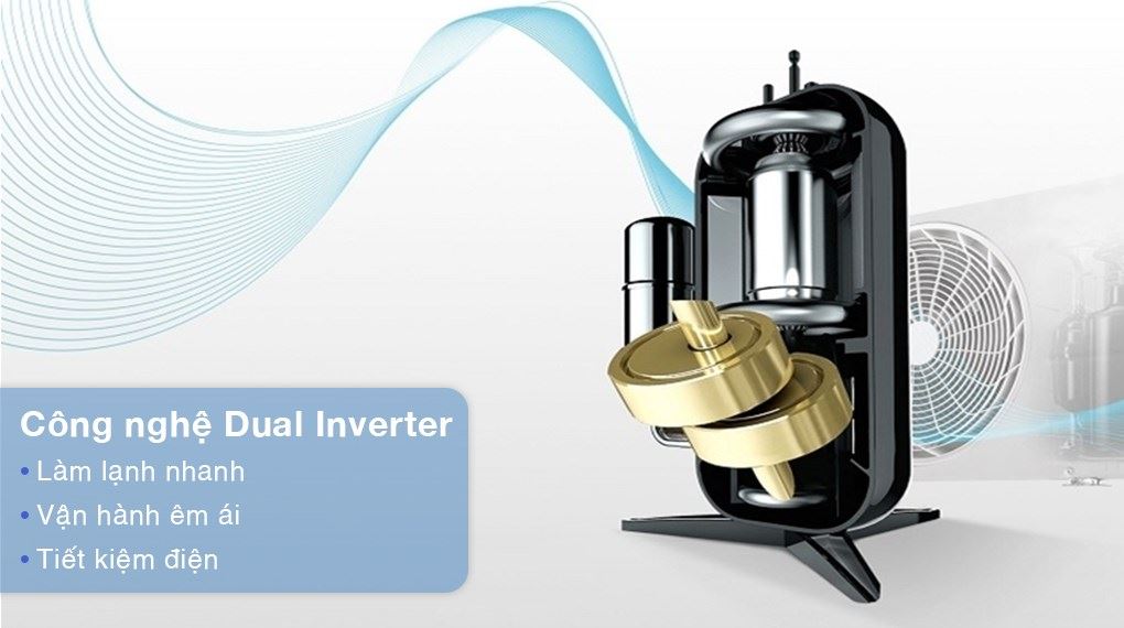 - Trang bị công nghệ Dual inverter nên máy lạnh LG sẽ tiết kiệm điện năng sử dụng, đồng thời tăng khả năng làm lạnh.