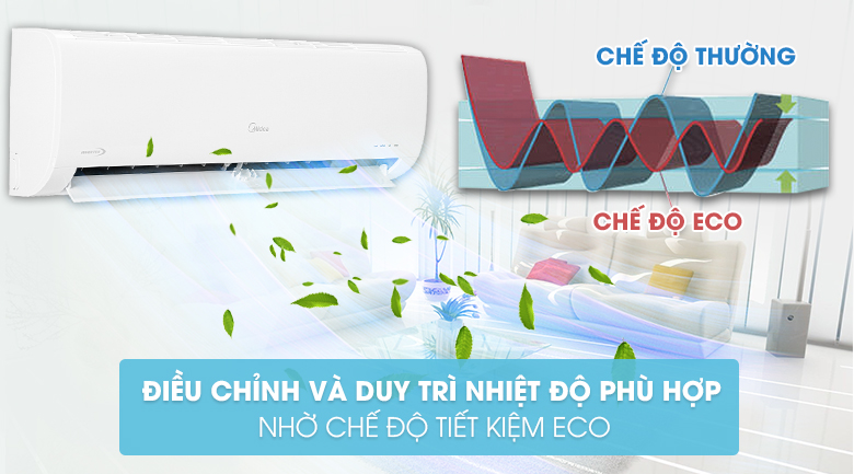 Khi kích hoạt chế độ ECO, chế độ này sẽ tự động điều chỉnh nhiệt độ và chế độ làm lạnh phù hợp với nhiệt độ phòng hiện tại. Giúp làm mát tối ưu, mang đến sự thoải mái nhưng vẫn đảm bảo tiết kiệm điện điện hiệu quả.