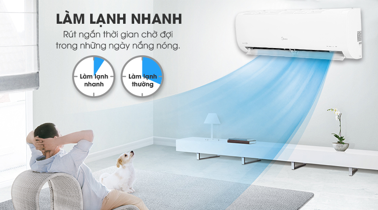 Tính năng làm lạnh nhanh Turbo trên máy lạnh Midea sẽ hoạt động với công suất cao nhất, làm lạnh nhanh chóng chỉ trong vòng vài giây, mang đến không gian mát lạnh, dễ chịu tức thì.