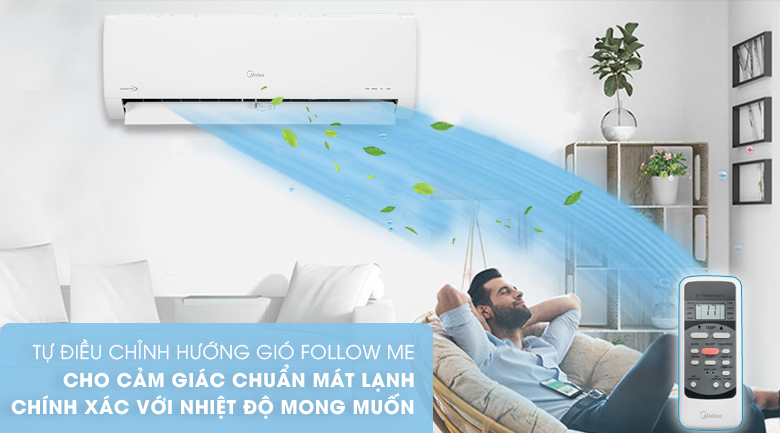 Khi người dùng khởi động tính năng Follow me và đặt remote bên cạnh, remote điều khiển sẽ cảm nhận nhiệt độ xung quanh nhờ vào cảm biến nhiệt, sau đó sẽ truyền tín hiệu về dàn lạnh và máy sẽ tự động điều chỉnh công suất để nhiệt độ của khu vực đó phù hợp với nhiệt độ cài đặt, cho người dùng cảm giác thư giãn bởi luồng khí mát mẻ bao quanh.