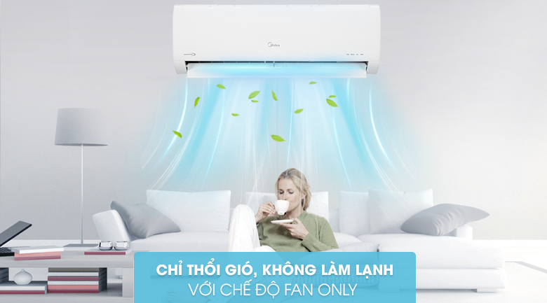Khi kích hoạt chế độ Fan only, máy chỉ hoạt động ở bộ phận quạt gió và không làm lạnh, chế độ này làm mát hiệu quả ở không gian rộng vì máy lạnh được lắp ở trên cao, rất hữu ích trong những ngày thời tiết mát mẻ, khi người dùng không cần làm lạnh.