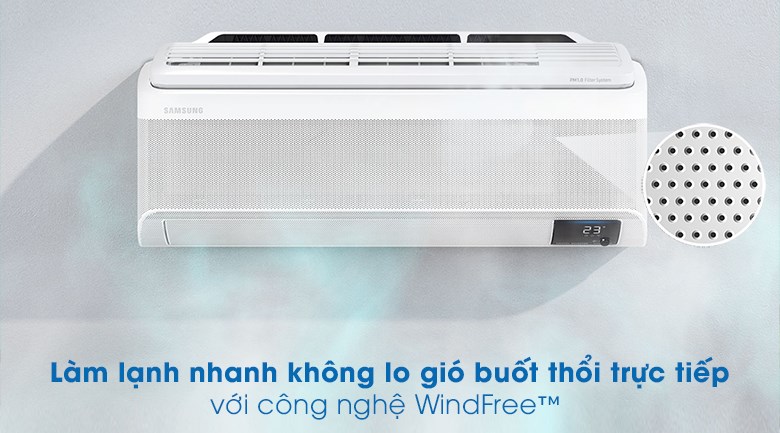 Hơn hẳn máy lạnh thông thường, ngoài hiệu quả mát lạnh tức thì, máy lạnh Samsung Wind-Free Inverter 1.5 HP AR13TYAACWKNSV còn có thêm lựa chọn chế độ làm lạnh WindFree™ không gió buốt thổi trực tiếp.