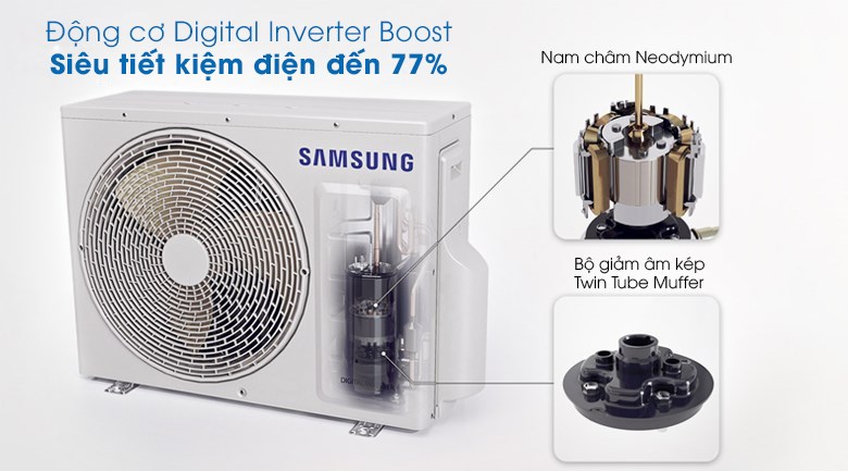 Máy lạnh Samsung Wind-Free Inverter AR10TYAACWKNSV sở hữu động cơ Digital Inverter Boost ưu việt giúp máy sử dụng điện năng hiệu quả để vận hành ở tần suất thấp nhưng vẫn mang lại hơi lạnh ổn định, tiết kiệm đến 77% điện năng.