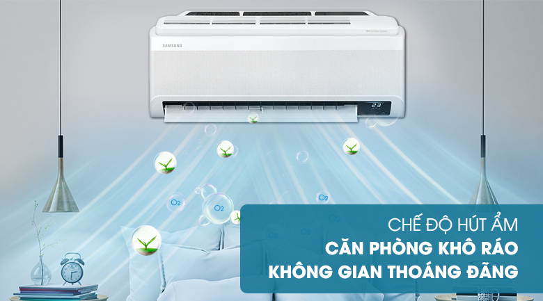 Chế độ hút ẩm giúp căn phòng trở nên khô ráo hơn và tạo không gian thoáng đãng cho người dùng khi thời tiết ẩm ướt hoặc vào mùa gió nồm khó chịu.