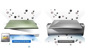 Lớp phủ chống vi khuẩnNhờ có cấu trúc độc đáo của lớp phủ chống vi khuẩn, bộ lọc này có thể lọc ra những phần tử bụi nhỏ và những con vi khuẩn mà không thể nhìn thấy bằng mắt thường, vì vậy không khí luôn sạch sẽ và tươi mát | Bộ lọc HD toàn diệnBộ lọc HD toàn diện cung cấp phương pháp lọc cải tiến bằng cách loại bỏ những phần tử bụi nhỏ nhất và chuyển hóa không khí bị ô nhiễm thành luồng không khí sạch sẽ. | Chức năng tự làm sạchCó thể bạn không biết, nhưng tất cả các máy lạnh đều có thể tạo ra nấm và vi trùng phát tán ra khắp nơi. Máy lạnh Samsung vận hành cánh quạt ngay cả khi bạn đã tắt máy do đó ngăn chặn việc phát tán vi khuẩn một cách triệt để mà vẫn giữ cho mọi thứ khô ráo và không có mùi. |