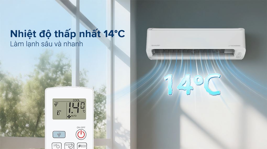Máy lạnh AH-X10DEW có khả năng làm lạnh sâu, mức thấp nhất xuống tới 14°C, phù hợp cho nhu cầu làm lạnh nhanh hoặc phòng diện tích lớn.