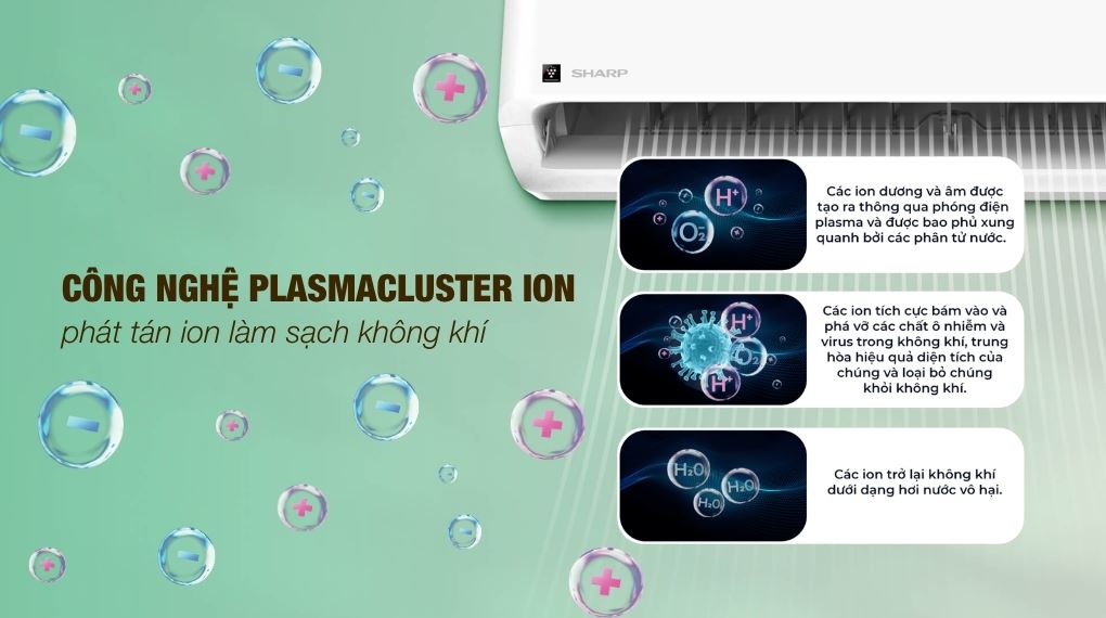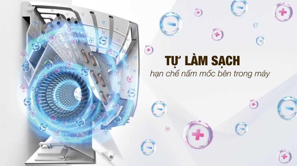 Tính năng tự làm sạch với Plasmacluster ion giúp làm khô bên trong dàn lạnh sau khi sử dụng, tạo ion hỗ trợ hạn chế ẩm mốc, mùi hôi và giữ luồng gió sạch hơn theo thời gian.