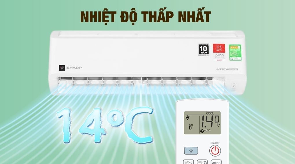 Máy còn có thể cài mức nhiệt thấp nhất xuống 14°C, phù hợp khi cần hạ nhiệt nhanh cho phòng trong những thời điểm thời tiết oi nóng.