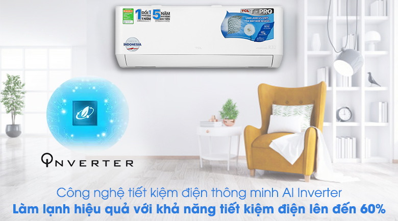 Chiếc máy lạnh TCL 1 HP này được trang bị công nghệ AI Inverter có thể ghi nhớ thói quen sử dụng và điều chỉnh linh hoạt vòng quay của máy nén giữ nhiệt độ trong phòng luôn ổn định, từ đó tiết kiệm đến 60% điện năng tiêu thụ.