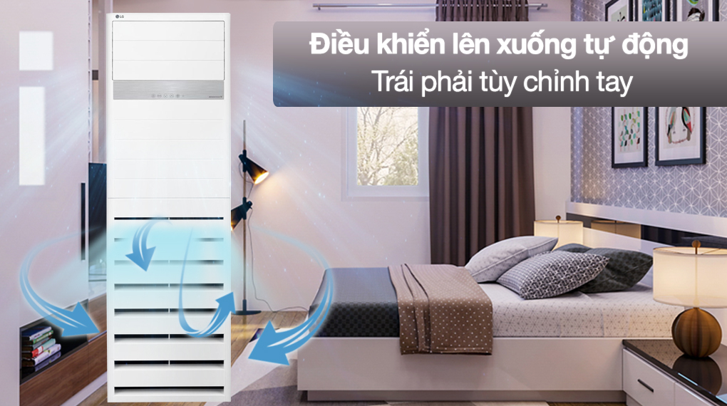 Máy lạnh tủ đứng LG Inverter 5 HP APNQ48GT3E4 phù hợp cho căn phòng lớn và có nhiều đồ đạc với diện tích trên 60m2. Hơn nữa, máy lạnh LG có khả năng làm lạnh đến 18°C nhanh chóng cùng với tốc độ quạt mạnh mẽ, giúp hơi lạnh tỏa đều 4 chiều linh hoạt, thậm chí hỗ trợ thổi xa đến 20m.