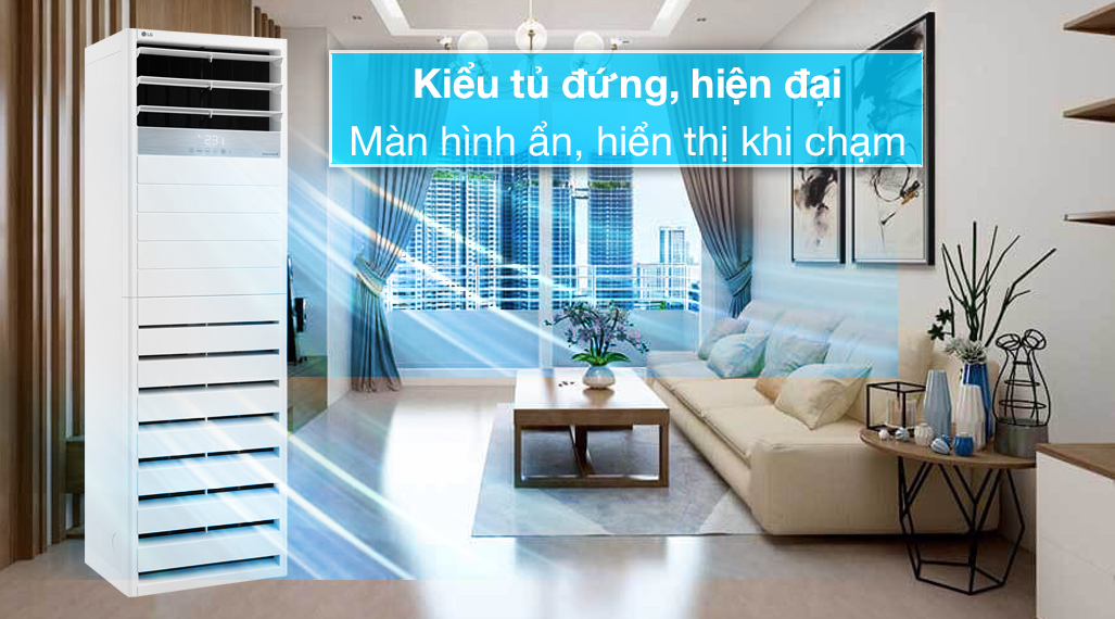 - Máy lạnh LG Inverter 5 HP APNQ48GT3E4 (3 PHA) sở hữu gam màu trắng thanh lịch và thiết kế kiểu tủ đứng, hứa hẹn trở thành thiết bị làm mát nổi bật bên trong không gian hiện đại của phòng khách hoặc sảnh chờ của công ty, khách sạn.