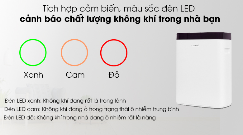 - Đèn màu đỏ: Không khí trong nhà đang ô nhiễm rất là nặng.