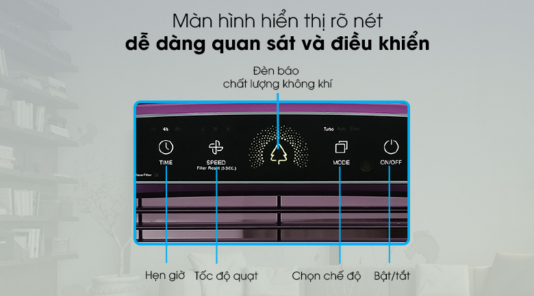 Công suất của chế độ Turbo hoạt động vô cùng mạnh mẽ giúp lọc sạch nhanh các tác nhân gây ô nhiễm không khí và gây hại cho sức khỏe.