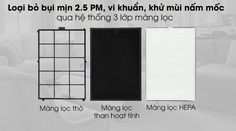- Màng lọc HEPA loại bỏ được các vật chất gây ô nhiễm, bụi mịn siêu nhỏ có kích cỡ 0.3 micromet (µm), các tác nhân gây hen suyễn, dị ứng có trong không khí.