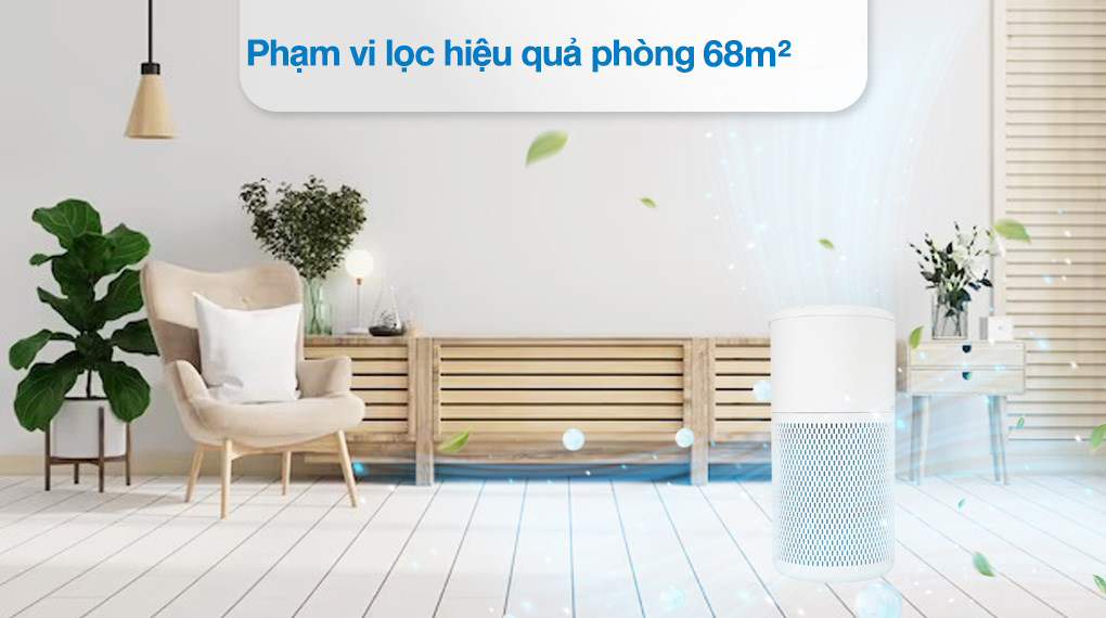 - Phạm vi lọc hiệu quả cho không gian rộng lên tới 68m² với lưu lượng gió lên tới 212 m3/h cho phép bạn sử dụng được ở nhiều không gian, làm sạch không khí hiệu quả.