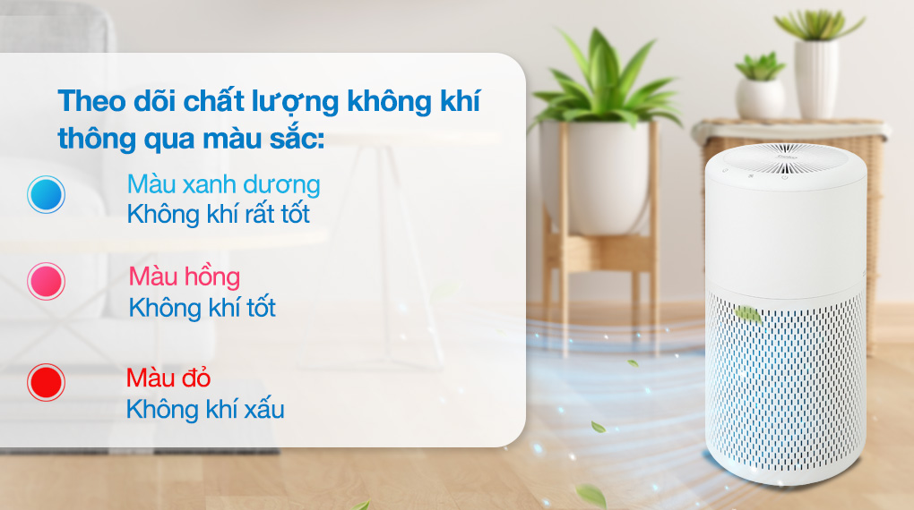 + Đèn báo màu xanh dương: không khí rất tốt.