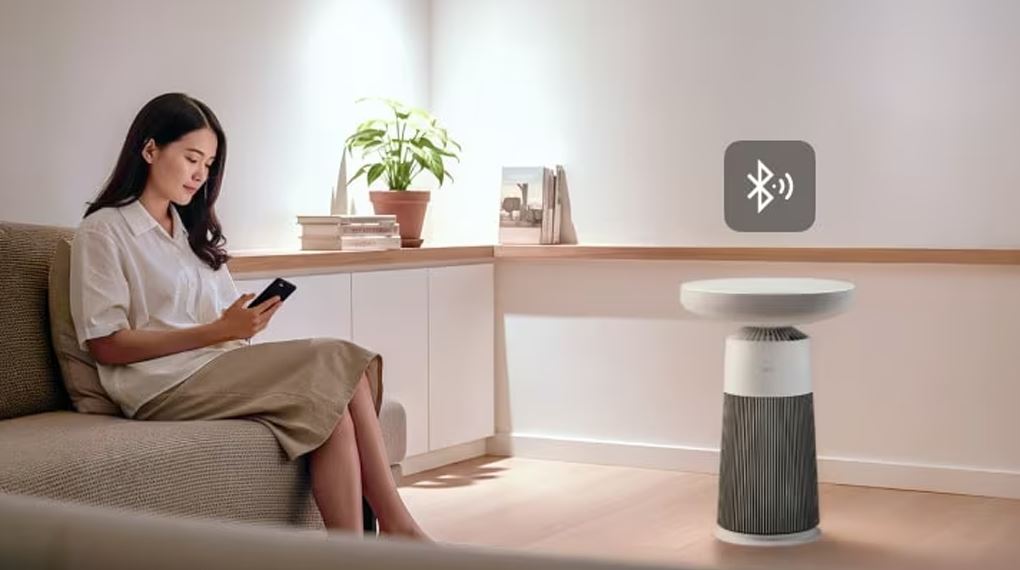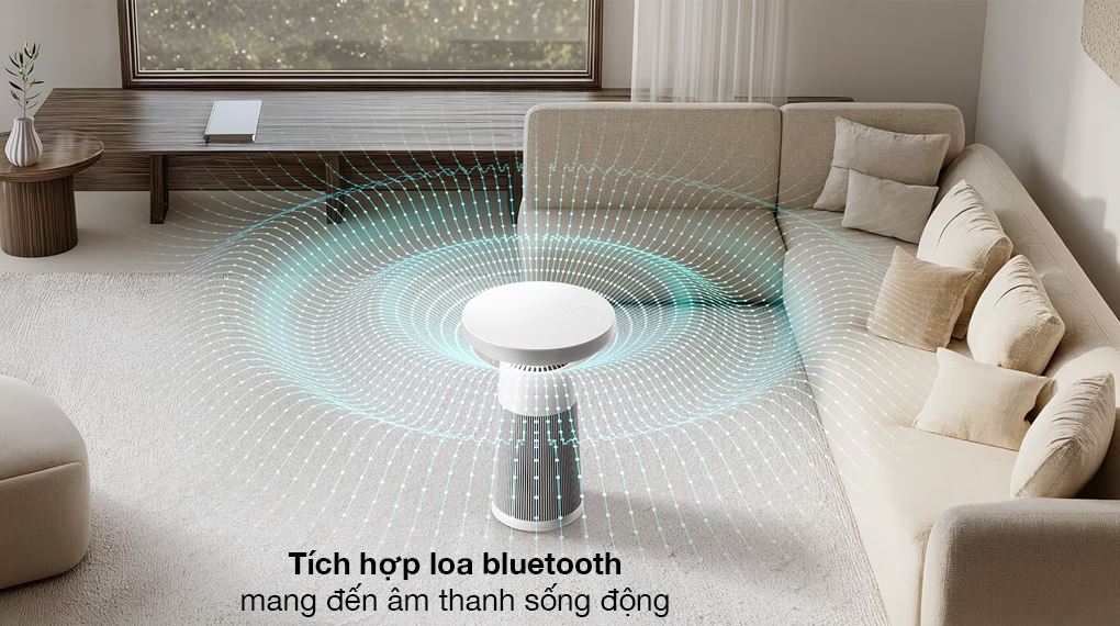 Máy hỗ trợ kết nối Bluetooth, kết hợp tính năng kết nối với TV, giúp tạo thành trung tâm âm thanh - không khí trong cùng một thiết bị, giảm bớt số lượng máy móc trong phòng.