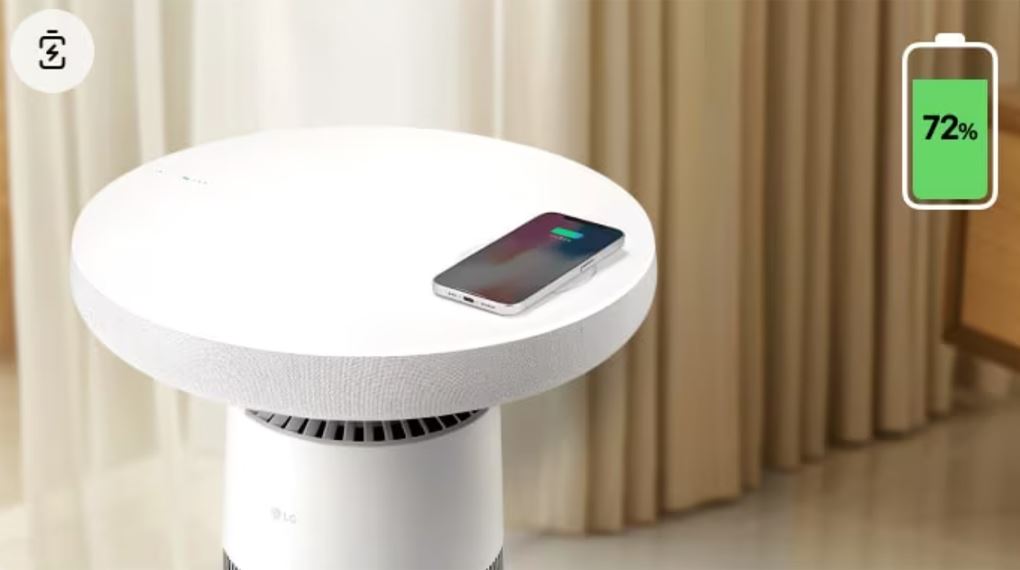 Sạc không dây tích hợp trên thân máy là chi tiết thực tế: người dùng có thể đặt điện thoại tương thích lên bề mặt để sạc mà không cần thêm đế sạc rời. Máy còn có đèn báo hoạt động, đèn báo chất lượng không khí, hẹn giờ, đèn/báo thay bộ lọc… giúp việc sử dụng hằng ngày trở nên rõ ràng, dễ quản lý.