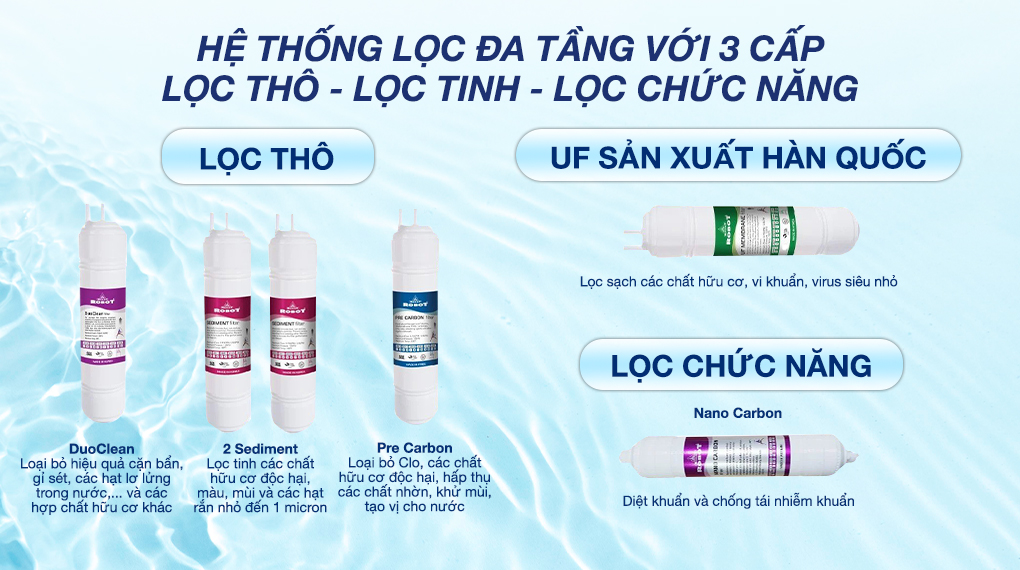 - Lõi Nano Carbon (Sx Việt Nam): diệt khuẩn và chống tái nhiễm khuẩn.