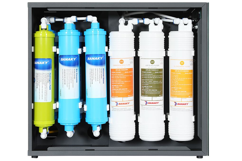 Các lõi chức năng như T33, Mineral, Bio Ceramic, Nano Silver, Alkaline và Hydrogen Plus giúp cân bằng lại khoáng chất, ổn định độ pH và tạo nước giàu Hydrogen sau quá trình lọc.