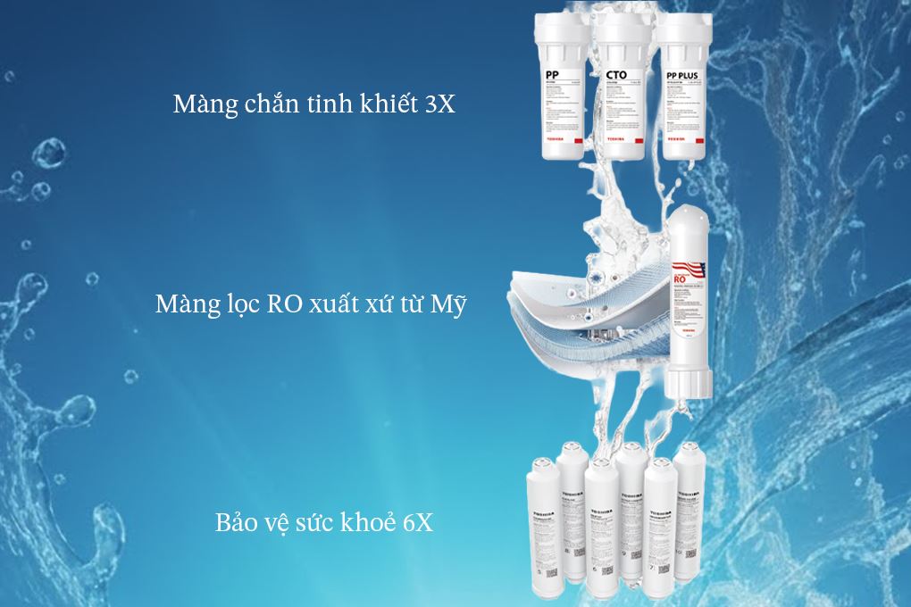Máy lọc nước RO Hydrogen Toshiba TWP-NA1SVN(K) 10 lõi nổi bật với màng RO DOW 100 GPD (USA), hỗ trợ loại bỏ tạp chất và kim loại nặng.