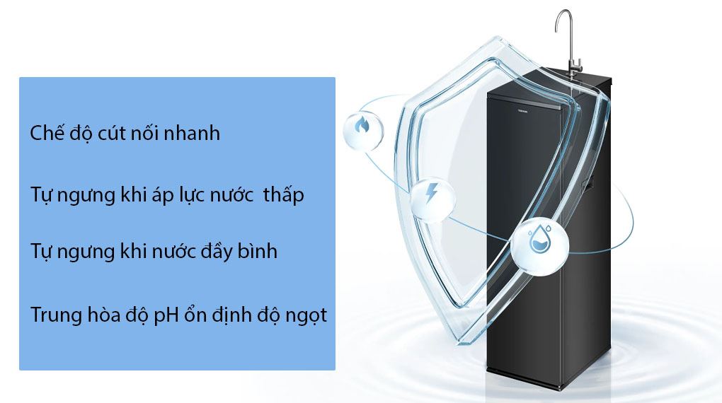 Máy lọc nước RO Hydrogen Toshiba trang bị một số tiện ích, hỗ trợ người dùng trong quá trình sử dụng: