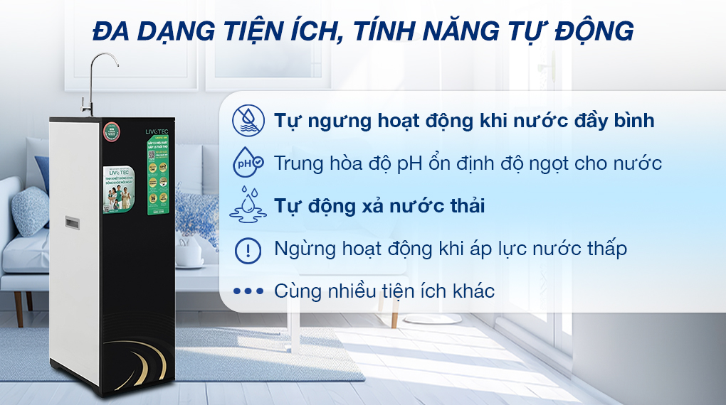 - Livotec tiên phong với các dòng máy có hiệu suất cao, nước sạch an toàn với chi phí hợp lý và thiết kế đẹp, sang trọng.
