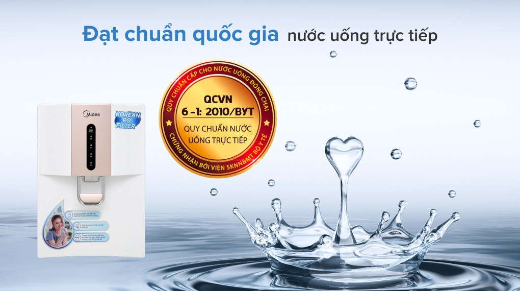 Nước sau khi lọc đạt tiêu chuẩn nước uống trực tiếp không cần đun sôi QCVN 6-1:2010/BYT.