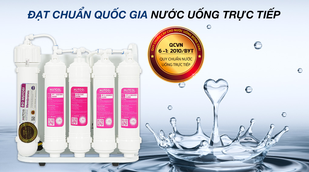 Lưu ý: Máy lọc nước của Mutosi xử lý được đa dạng các loại nước, tuy nhiên để nước đầu ra đạt các chỉ số như đã công bố và để màng RO đủ điều kiện bảo hành 1 đổi 1 thì nước đầu vào phải đạt chuẩn nước sinh hoạt QCVN 02:2009/BYT.