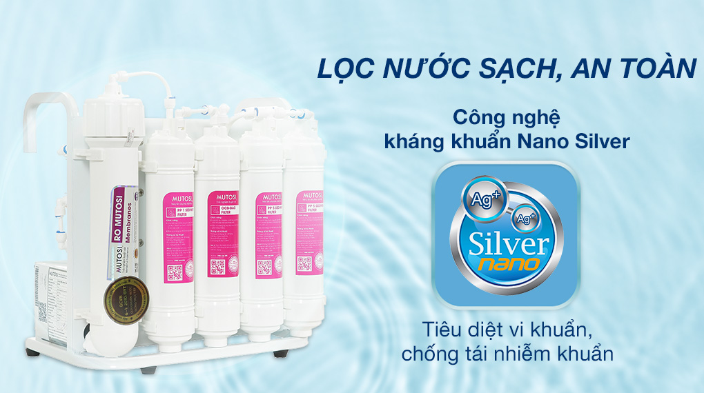 Công nghệ kháng khuẩn Nano Silver giúp tiêu diệt các loại vi khuẩn gây hại có trong nước.