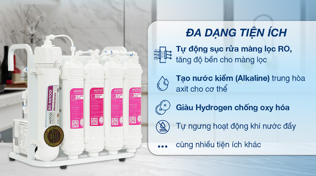 Máy lọc nước RO Mutosi MP-1101 11 lõi thiết kế dạng âm tủ, tiết kiệm không gian và tăng thẩm mỹ cho không gian nơi ở, công suất 15 lít/giờ, màng lọc RO 75 GPD sản xuất tại Hàn Quốc cho hiệu suất lọc cao, nước uống đạt chuẩn Bộ Y tế,...
