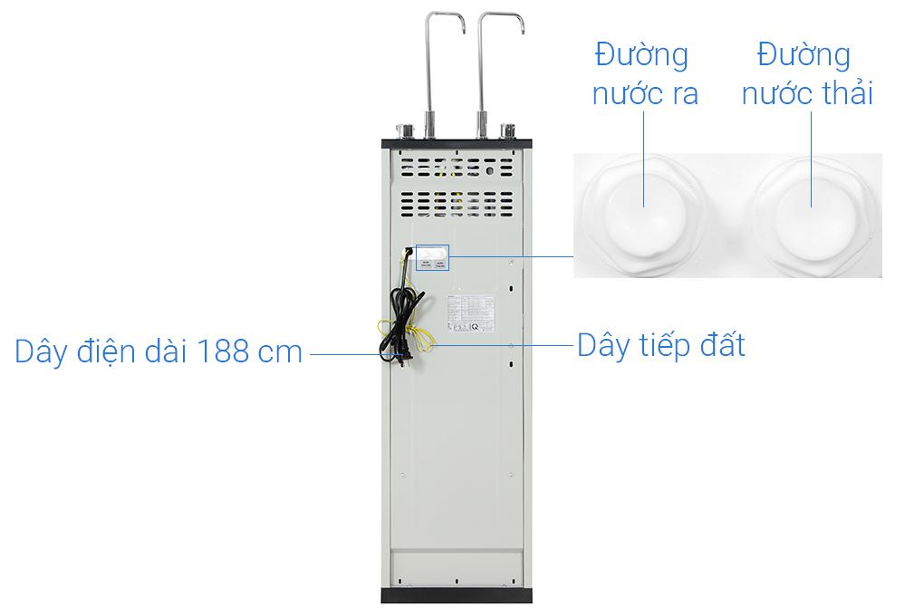 Máy lọc nước thiết kế dạng tủ đứng hiện đại, dễ bố trí trong phòng bếp hoặc phòng khách, góp phần tối ưu không gian sử dụng trong gia đình.