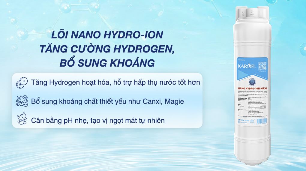 - Lõi Nano Hydro-ion kiềm: tăng hàm lượng Hydrogen, tạo ion kiềm và khoáng chất, giảm oxy hóa và bổ sung vi khoáng. Ngoài ra còn phủ Nano Silver giúp diệt khuẩn hiệu quả.