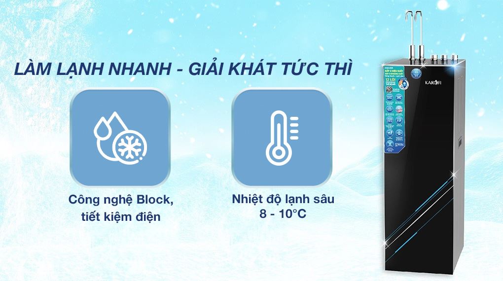 - Công nghệ làm lạnh Block duy trì nhiệt độ nước lạnh ổn định từ 8 - 10°C, mang lại cảm giác mát lạnh cho người sử dụng.