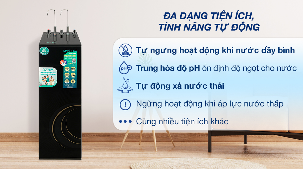 - Livotec tiên phong với các dòng máy có hiệu suất cao, nước sạch an toàn với chi phí hợp lý và thiết kế đẹp, sang trọng.