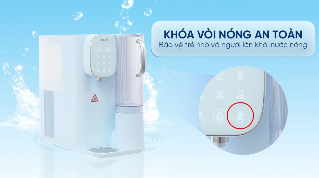- Khóa an toàn vòi nóng bảo vệ trẻ nhỏ.