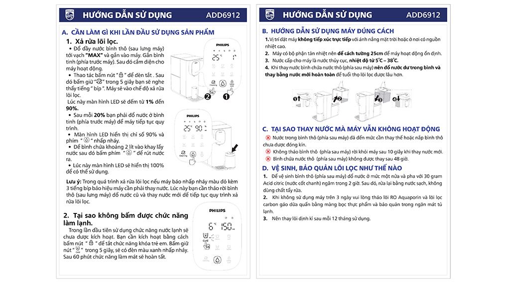Xem thêm hướng dẫn sử dụng máy lọc nước RO nóng nguội lạnh Philips ADD6912WH/74 2 lõi