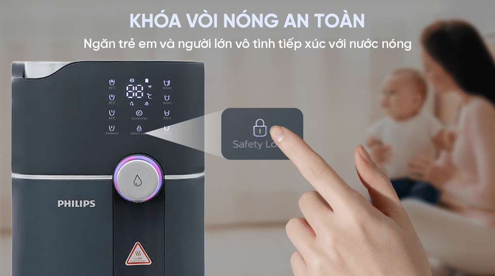 + Khóa an toàn vòi nóng, tránh gây bỏng cho người lớn tuổi hoặc trẻ nhỏ.