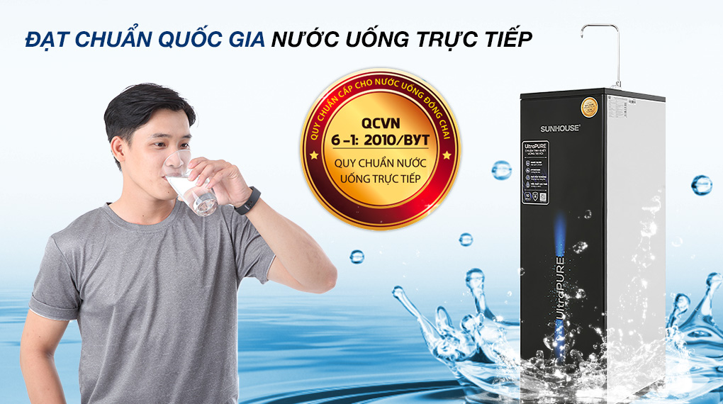 Nước sau khi lọc đạt tiêu chuẩn nước uống trực tiếp không cần đun sôi QCVN 6-1:2010/BYT đảm bảo an toàn cho sức khoẻ người dùng.