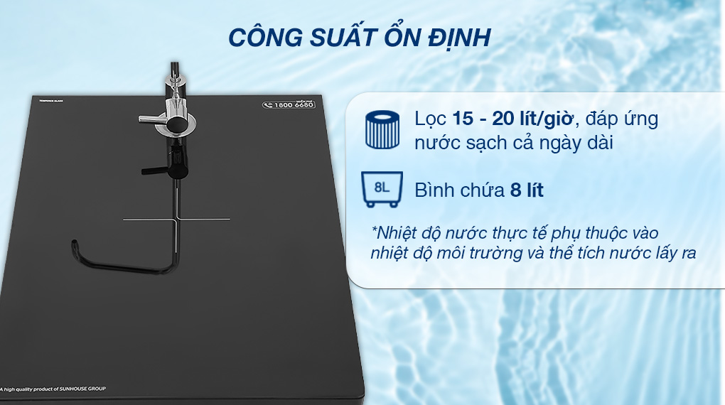 - Công suất lọc 15 - 20 lít/giờ hoạt động ổn định.