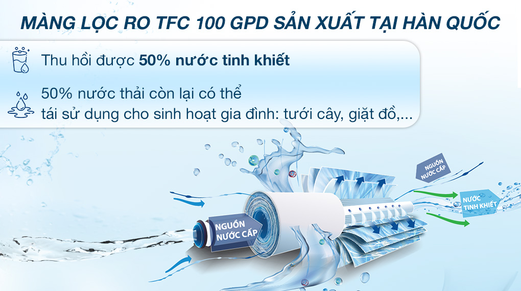 - Lọc được nước máy tiêu chuẩn QCVN 01-1:2018/BYT (không sử dụng các nguồn nước như nước giếng khoan, ao, hồ, sông, suối,... chưa qua xử lý).