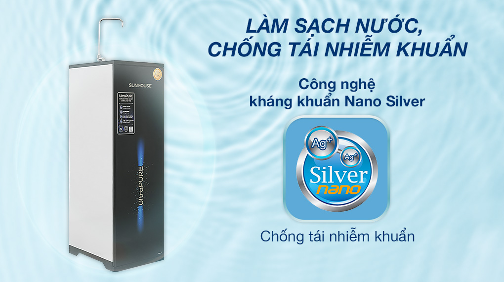 Công nghệ kháng khuẩn Nano Silver giúp chống tái nhiễm khuẩn sau khi nước đi qua màng RO.