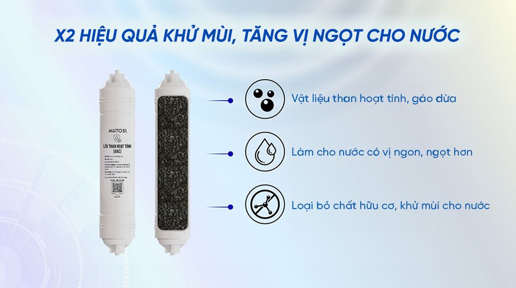 - Lõi than hoạt tính: loại bỏ khí gây mùi, làm vị nước ngon ngọt tự nhiên.