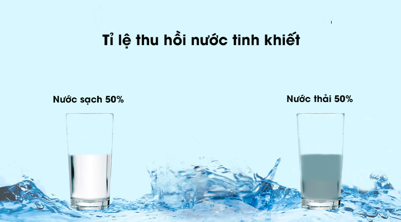 Như vậy 10 lít nước trải qua quá trình lọc từ máy sẽ có 5 lít nước thải và 5 lít nước tinh khiết. Nguồn nước tinh khiết có thể uống ngay, còn nước thải sử dụng cho sinh hoạt, tắm rửa, giặt, rửa đồ,...