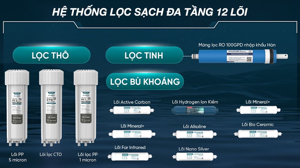 Với hệ thống 12 lõi lọc, kết hợp các công nghệ hiện đại cùng khả năng tạo 4 loại nước tiện lợi, máy lọc nước RO nóng nguội lạnh Hydrogen ion kiềm Sunhouse UltraX SHA76258LA 12 lõi chính là khoản đầu tư thiết yếu cho sự tiện nghi và sức khỏe toàn diện của gia đình bạn.