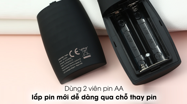 Mặt sau máy mài gót chân Lanaform có chỗ thay pin có nắp đậy rời, cho bạn thao tác linh hoạt.